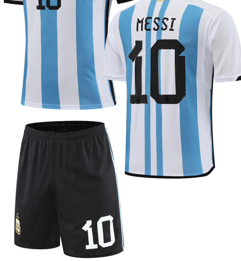 Argentina home World Cup 2022 Qatar is there best design to date produced with there best player LIONEL MESSI how can they go wrong comes with the shorts made out of 100% cooldry polyester fabric. Great for harmony day, book week, school jersey day and dress up parties . There True to size.